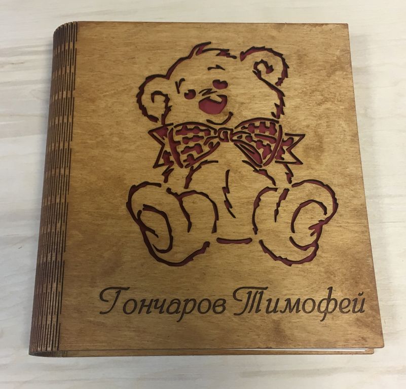 Оригинальный детский фотоальбом с обложкой из дерева, персонализацией.